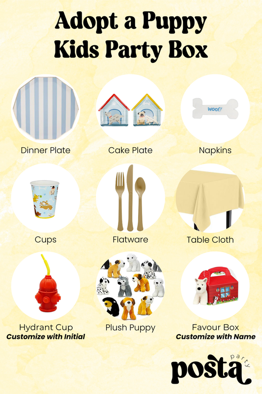When you select the "Kids Personalized" guest type, personalizations such as name, initial or other customizations are added to certain items within the party box based on the theme selected. See your favourite theme for more details on the specific customization.